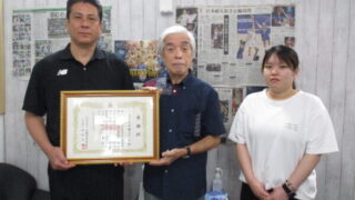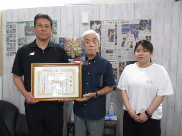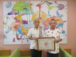 後日、感謝状を贈らせていただきました。(代行;喜友名朝教業務執行理事)