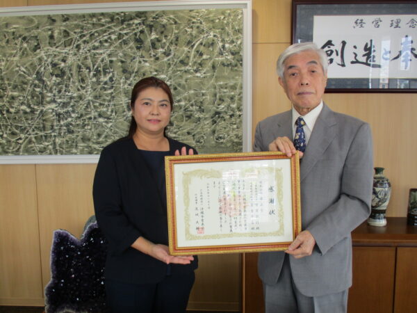 後日、感謝状を贈らせていただきました。(代行;喜友名朝教業務執行理事)
